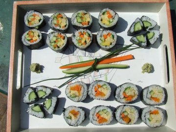 Я дочке готовлю вегетарианские суши, когда она приезжает на каникулы. Она у меня вегетарианка с рождения. Не воспринимала животную еду, ну а мне хватило ума не настаивать. Ничего, выросла. Умница, красавица, добрая и чуткая девочка. Сейчас уже вегетарианка по убеждению.